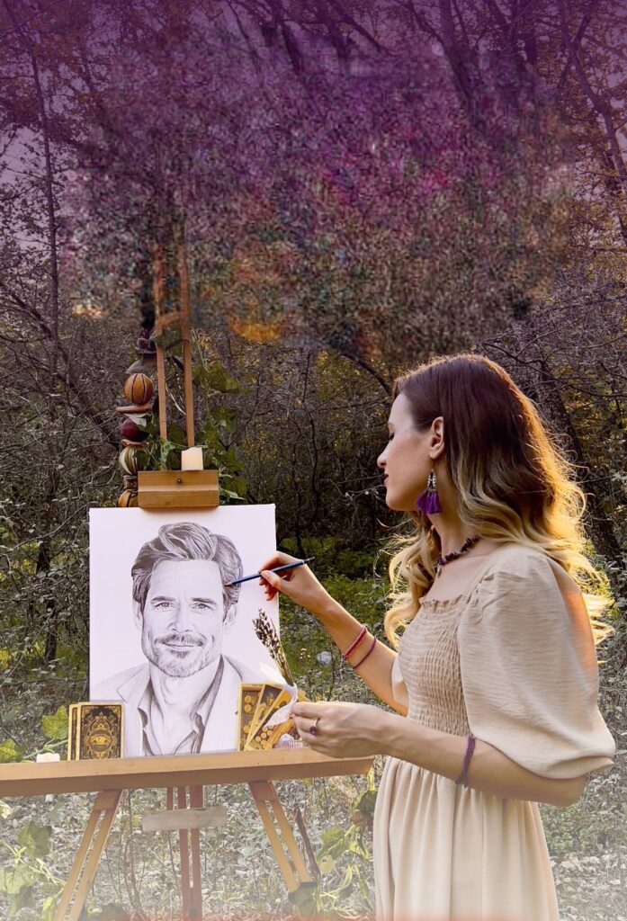 Desenho canalizado da sua alma gêmea — com traços espiritualmente guiados e realistas.